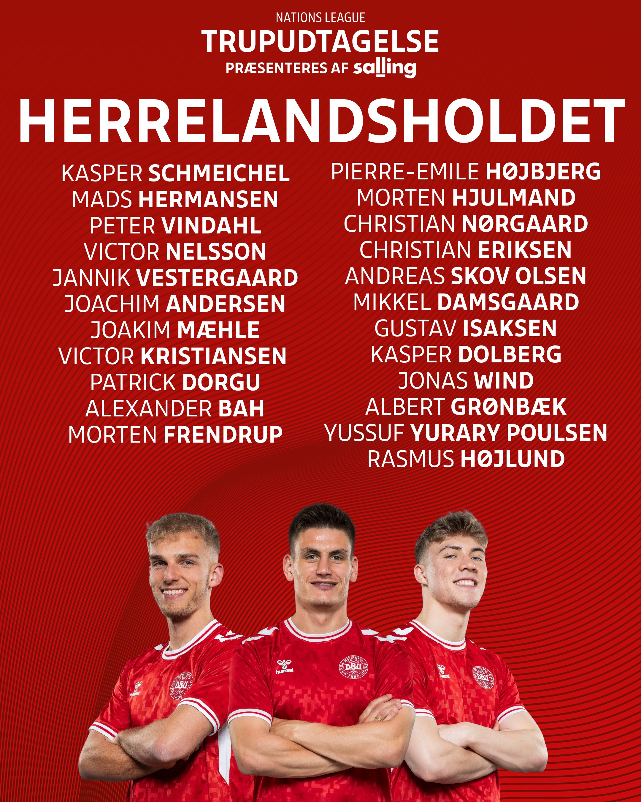 Den nye landstræner for Herrelandsholdet, Brian Riemer, har sat navne på de 23 spillere, der skal kæmpe for at sikre Danmark en plads blandt de to bedste i puljen og dermed avancement til forårets slutspil i Nations League.