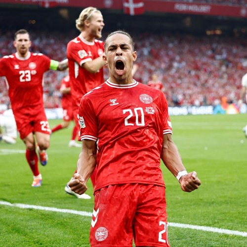 Efter en times spil satte Victor Kristiansen sig igennem i venstresiden og sendte et indlæg ind i feltet. Her kastede Yussuf Poulsen sig op i luften og saksesparkede bolden i mål. Gigantisk eufori i Parken og 2-0 til Danmark.