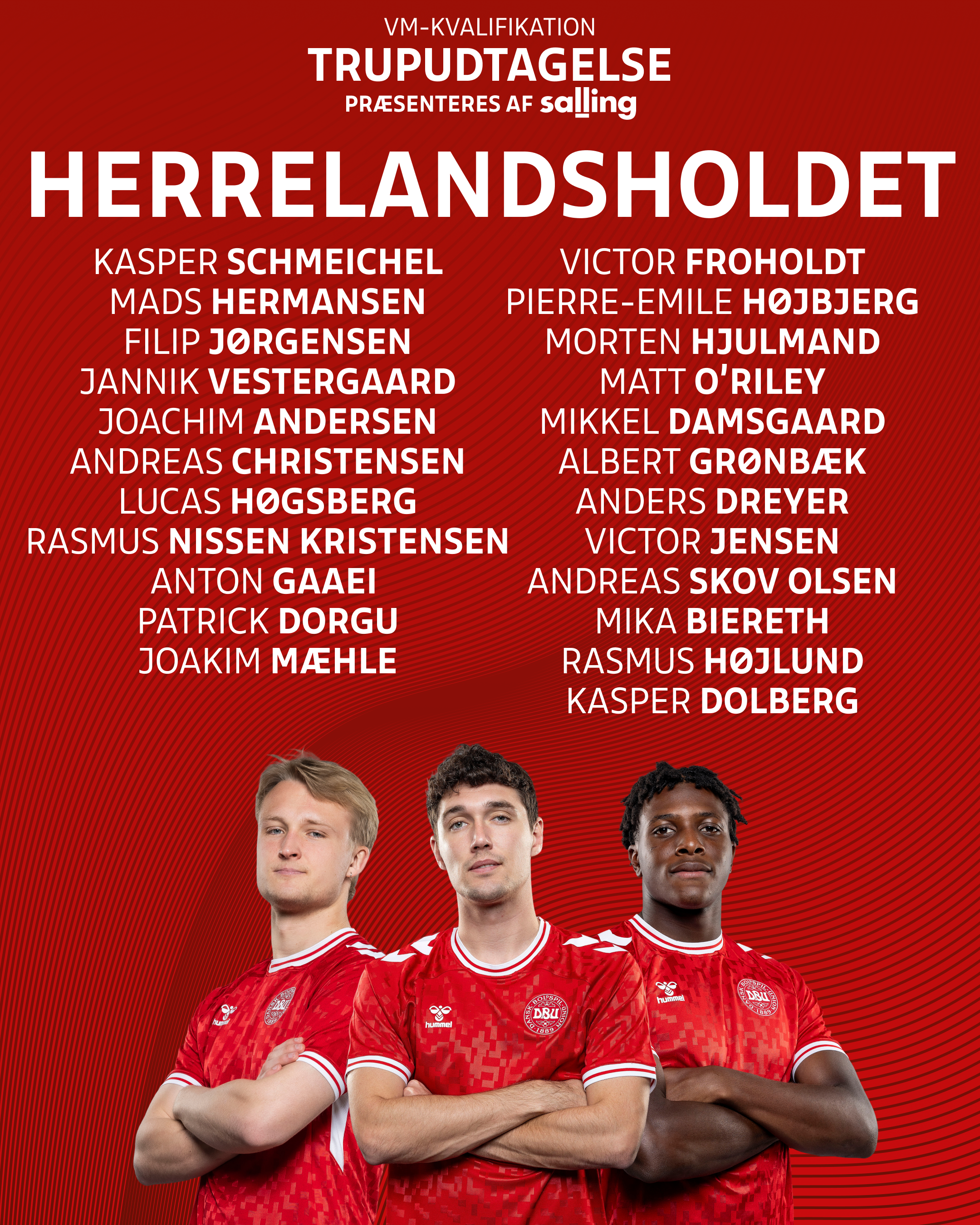 Det er en blanding af velkendte og nyere navne, der skal kæmpe for de danske farver, når Herrelandsholdet i september begynder jagten på at komme til VM i Mexico, USA og Canada med en hjemmekamp i Parken mod Skotland og en udekamp i Piræus tre dage senere mod Grækenland.