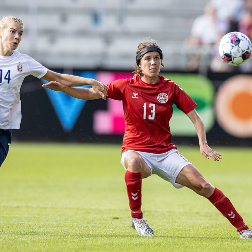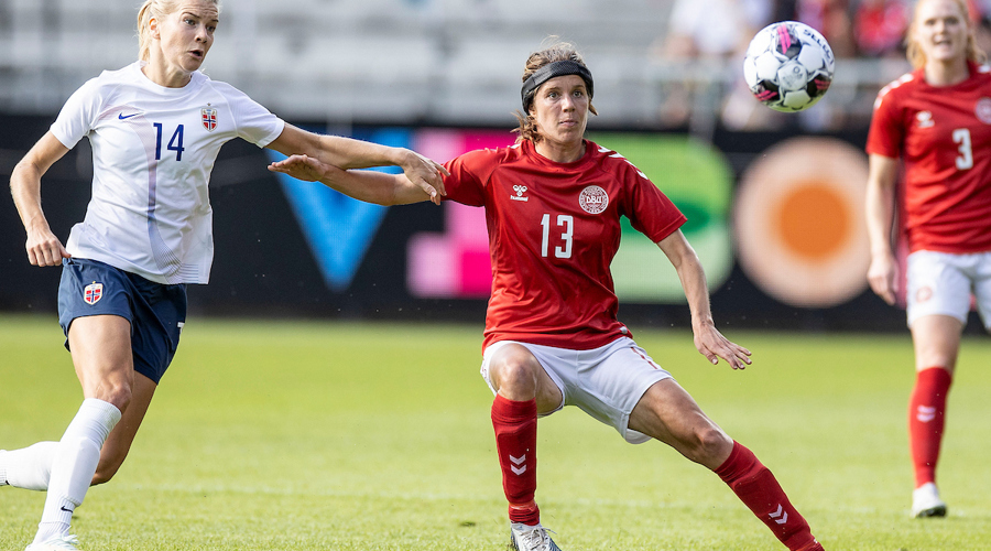 Sofie Junge i aktion mod Norge i 2022. Foto: fodboldbilleder.dk