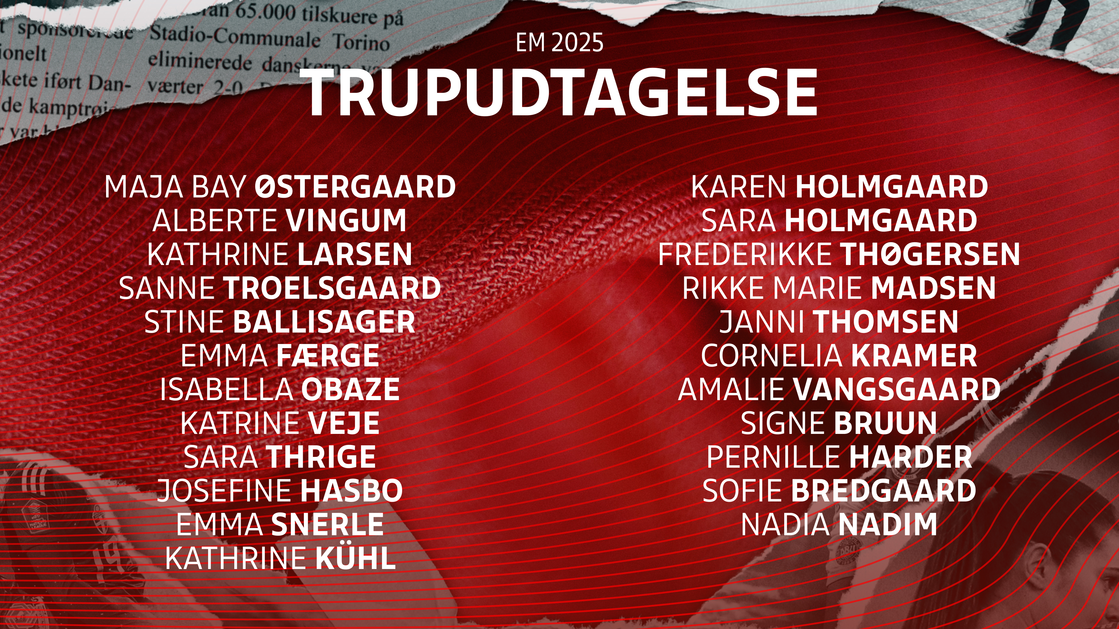 Andrée Jeglertz har nu sat savne på de 23 spillere, der skal repræsentere Danmark til den store slutrunde. Se truppen blive præsenteret i videoen her:
