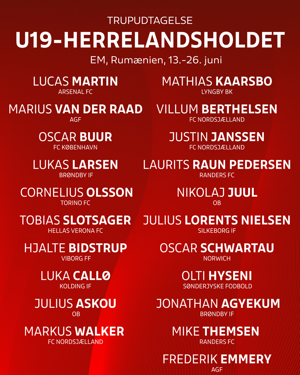 U19-landstræner Lasse Stensgaard har udtaget holdet til EM.