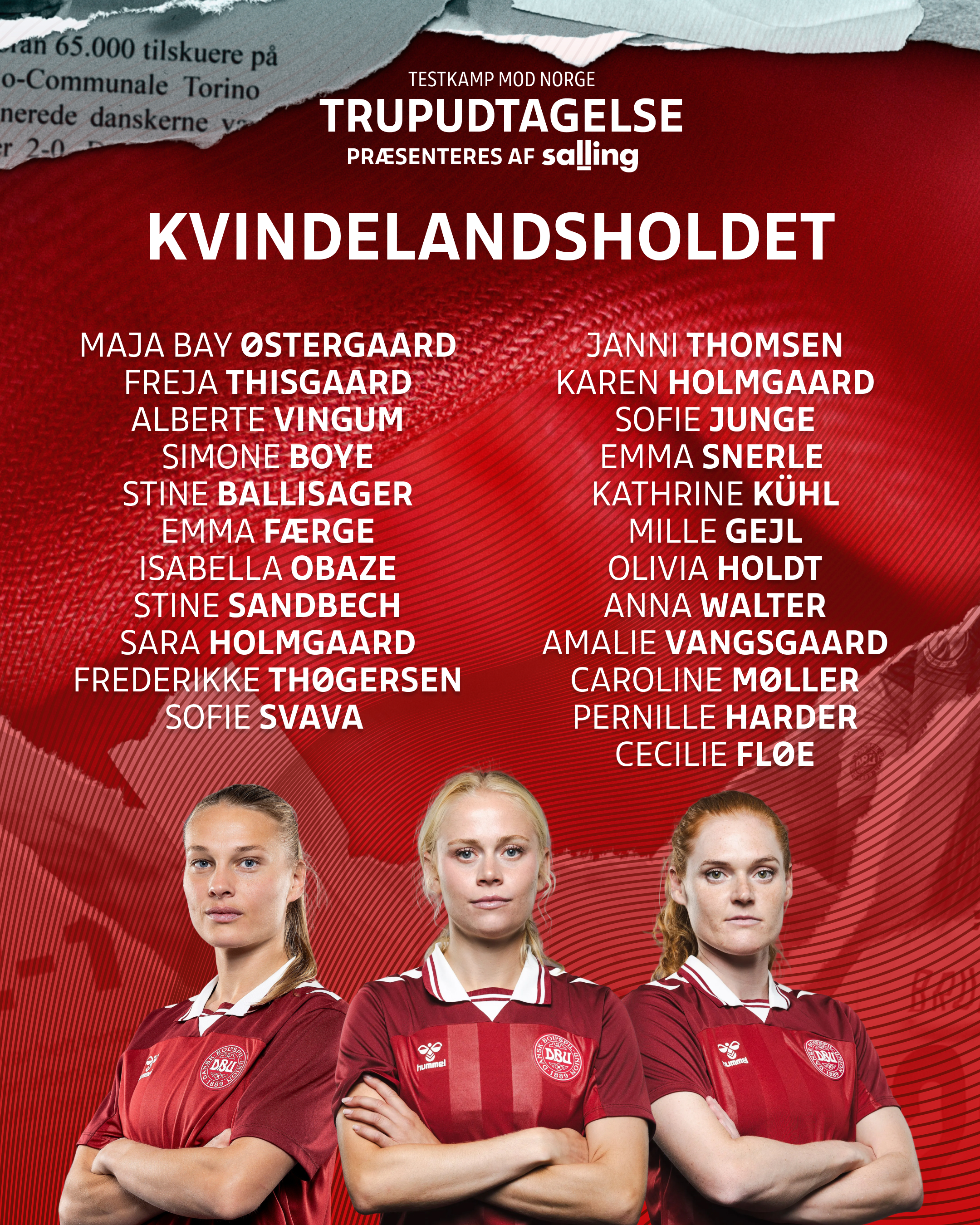 Der er også comeback til Sofie Junge (FC Badalona) og Caroline Møller (SL Benfica), som senest har fået minutter i landsholdstrøjen henholdsvis mod Wales (Nations League) i september 2023 og mod Island (træningskamp) i december 2024.